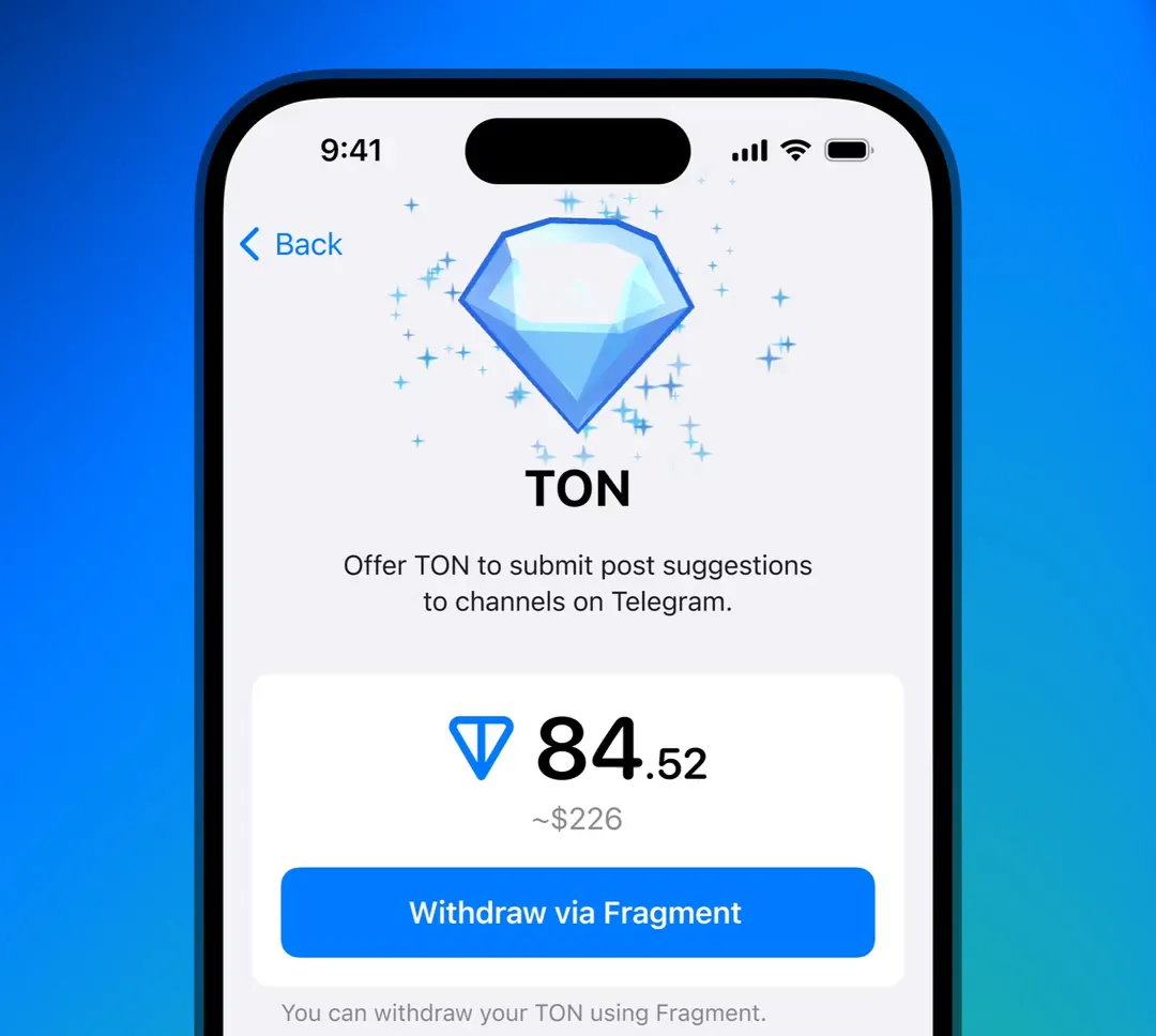 您可以通过Fragment将 Toncoin 快速添加到您的 Telegram 帐户——这允许进行更大额的购买